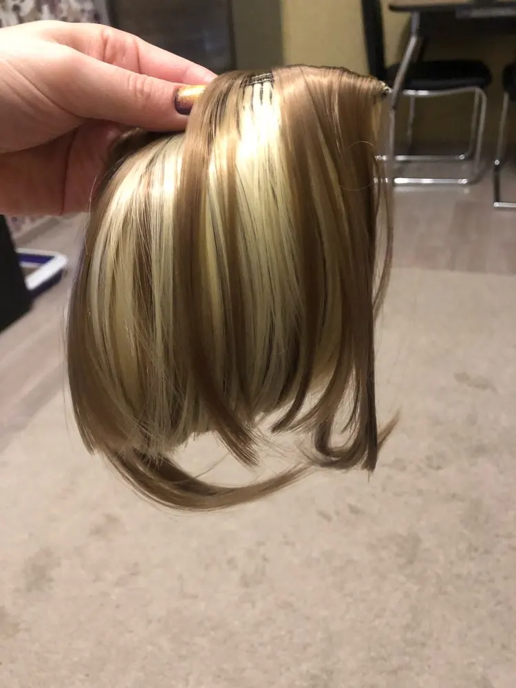 очень прикольная фигня! с цветом угадала, смотрится довольно натурально. закажу ещё разных других челок. держится на голове хорошо, перехода не видно. у меня короткое каре, волосы негустые