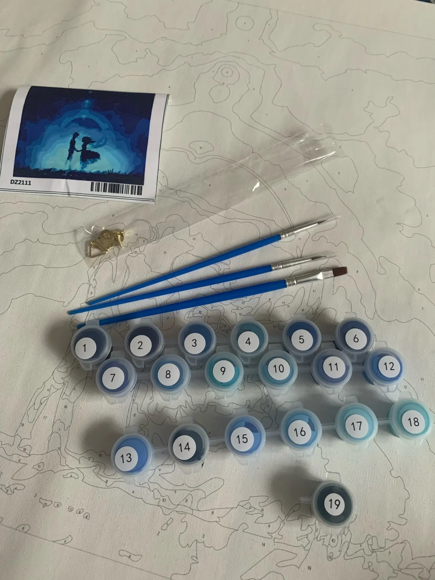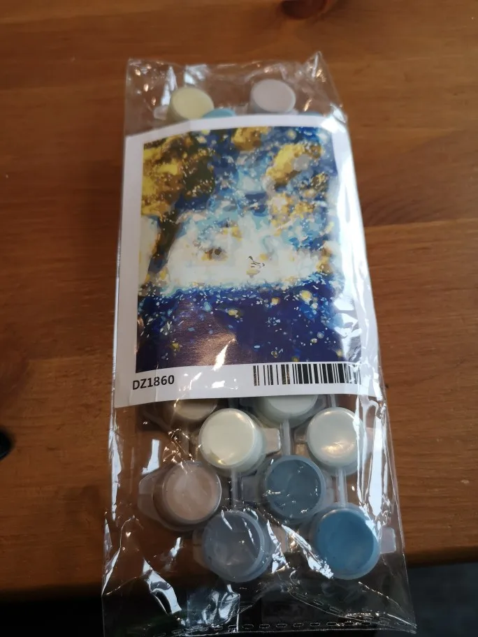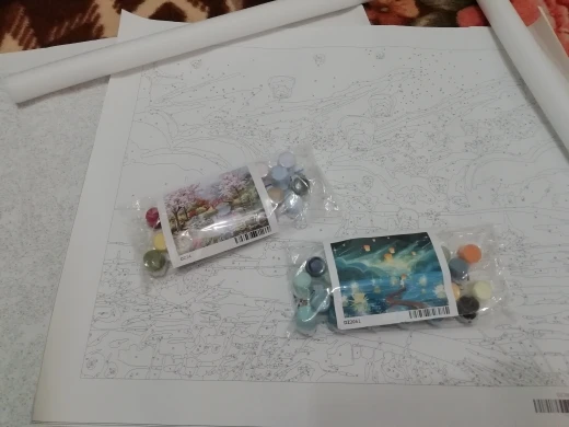Неплохая картина, качество материала и печати на хорошем уровне. В комплекте к холсту идут краски, комплект кисточек и крепеж для того, что бы вешать картину. Продавец так же положил цветное изображение-подсказку. Доставка два с половиной месяца, посылка отслеживалась только по Китаю. ***** Not a bad picture, quality of material and printing at a good level. Included with the canvas are paints, a set of brushes and fasteners for hanging the picture. The seller also put in a color hint image. Delivery two and a half months, the parcel was tracked only in China.