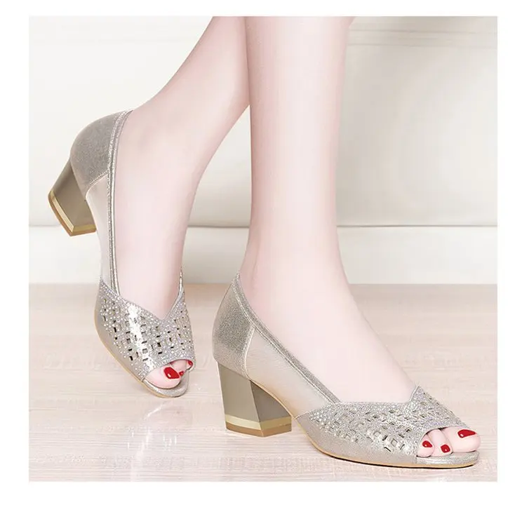Туфли-лодочки женские с открытым носком, сандалии на высоком квадратном каблуке, офисная обувь с вырезами, jki8, лето