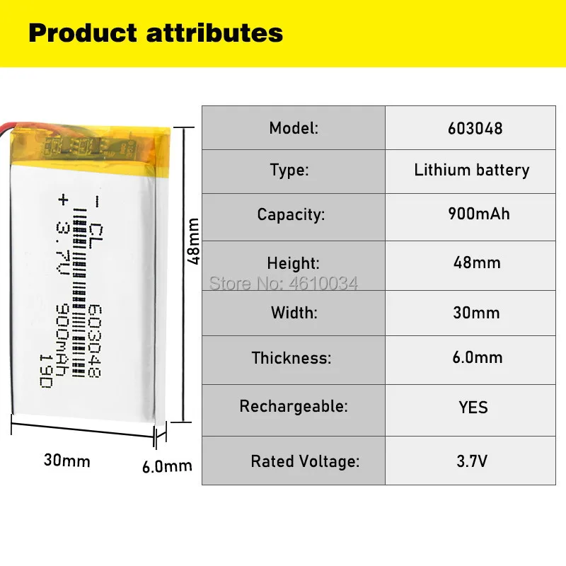 Литий-полимерный аккумулятор 602030 300 мАч 3,7 в, Bluetooth MP3 MP...