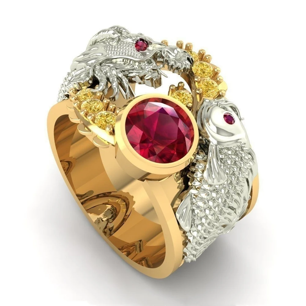 Новое Женское кольцо в виде животного, серебряное кольцо с глазами дракона и трески, кольцо с красным кристаллом, счастливый Тотем рыбы, Ювелирное Украшение в религиозном стиле