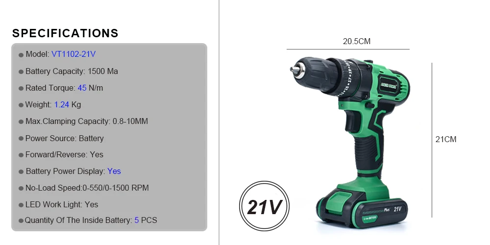 Заказываю второй раз, очень хороший шуроповерт, для кирпичных стен и старых бетонных стен ударный момент очень подходит. Аккумуляторы сразу надо заряжать. Короче, классный инструмент за такую цену. Спасибо продавцу за быструю доставку.