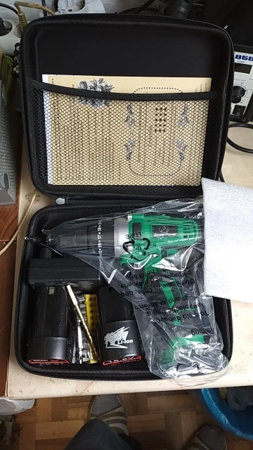Заказ сделан 12.11.20г доставлен куръером до двери 10.01.21г (долговато... Думал доставка быстрей будет). Товар не отслеживался. Т.Е. Трек номер есть, доставка с отслеживанием. отслеживаться должно было, но нет! Аккумуляторы заряжены, как на фото 3 положения. Бой ооочень слабый, но есть. Кейс маленький, удобный. В комплекте так же сверло с пером для плитки и бита шлиц-крест.