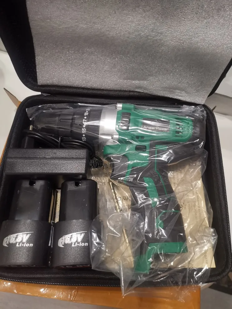 Товаром полностью доволен. Полный комплект ( шурик +2 аккумулятора на 16,8V +зарядка+чехол ) - как и заказывал. Шло конечно долго 2 месяца , но ожидание того стоило. Проверил все режимы работают ( отбойник + сверление + отвёртка + 2 скорости ). Аккумуляторы пришлось подзарядить , за одно и зарядку проверил. Взвесил 1 аккумулятор около 193 Гр для заявленных 1500 мА - это нормально. Спасибо продавцу.