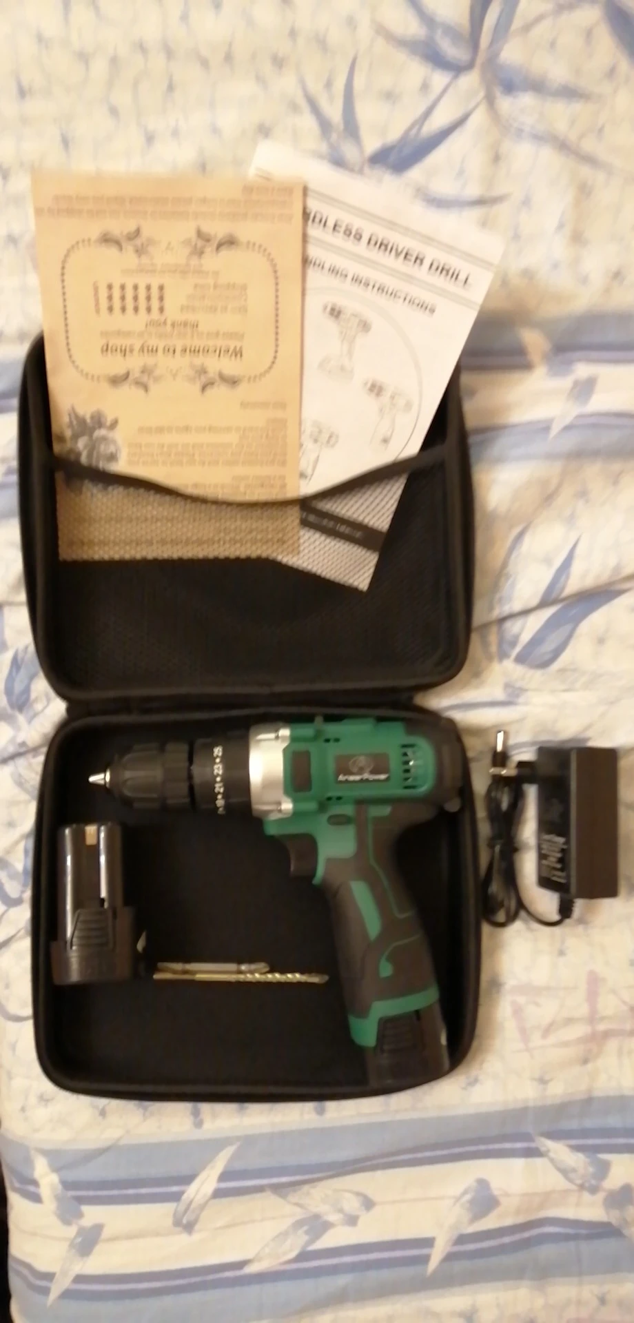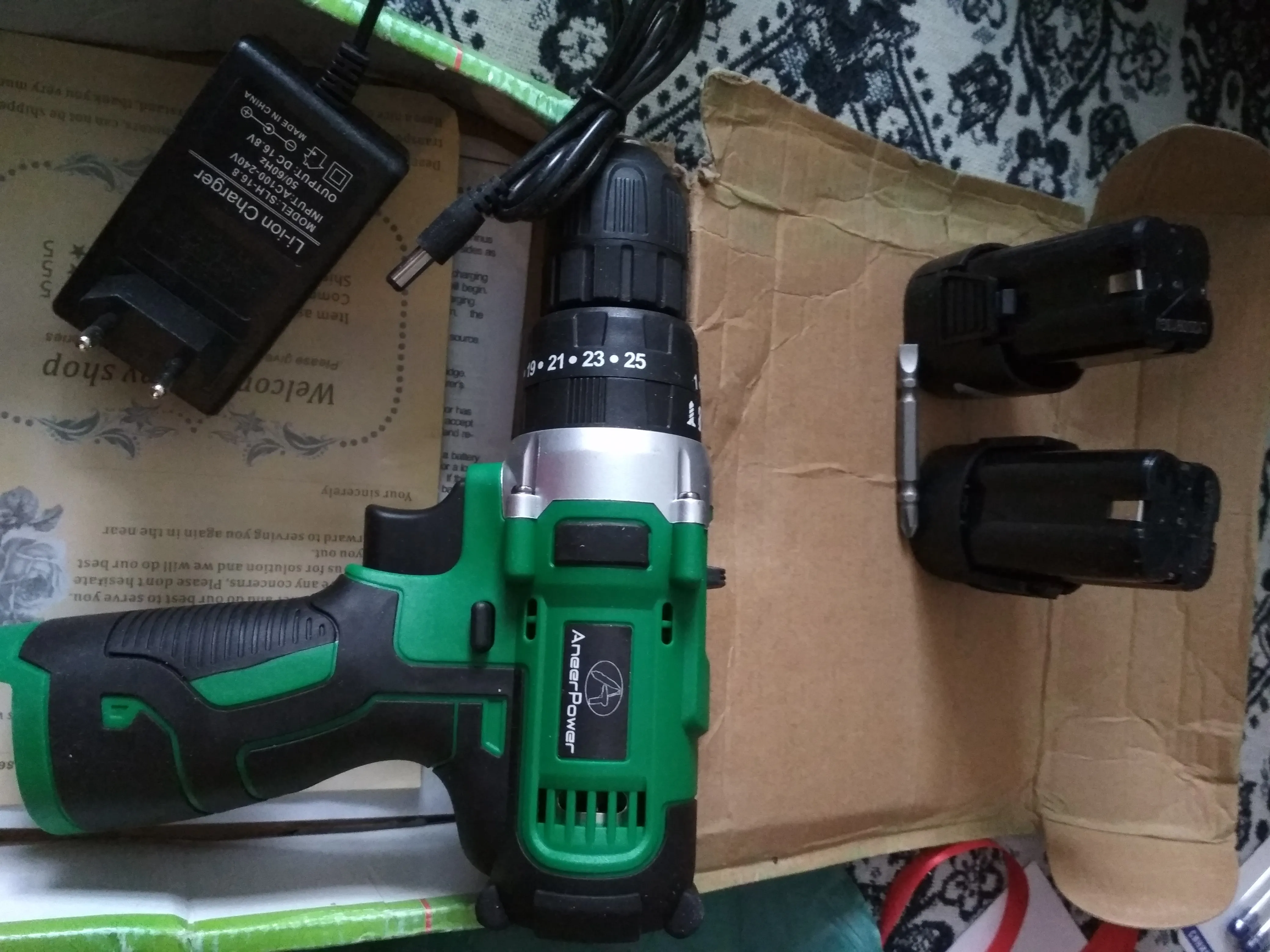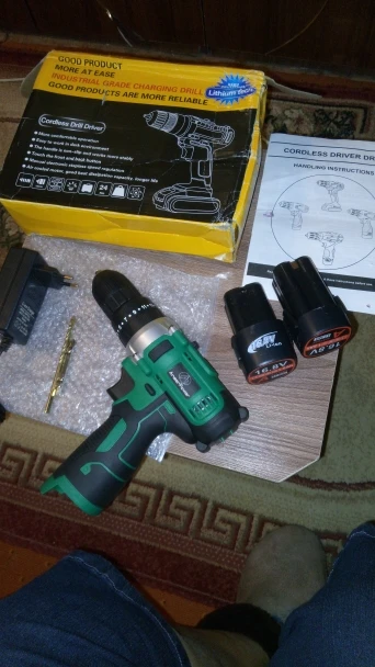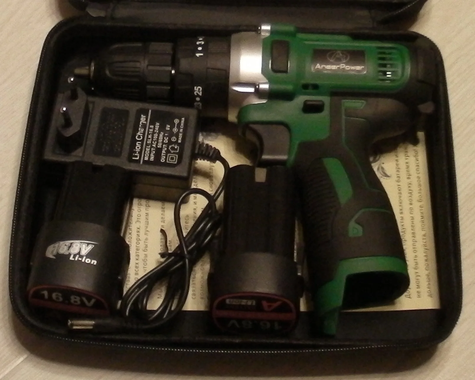 Отличный шуруповерт. Сделан качественно, два АКБ пришли заряженными. Удобная рукоятка, качественный пластик и резина. Покупкой доволен. Продавца рекомендую. Спасибо ему!