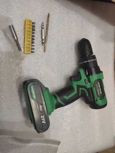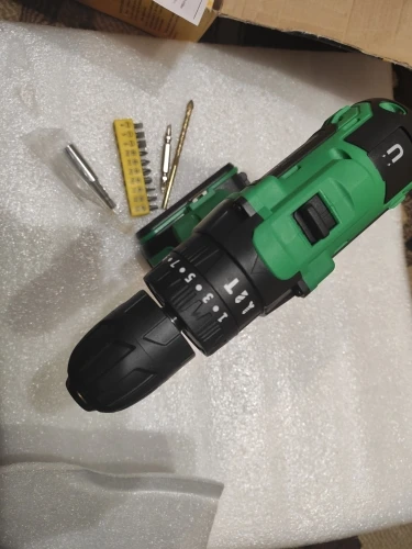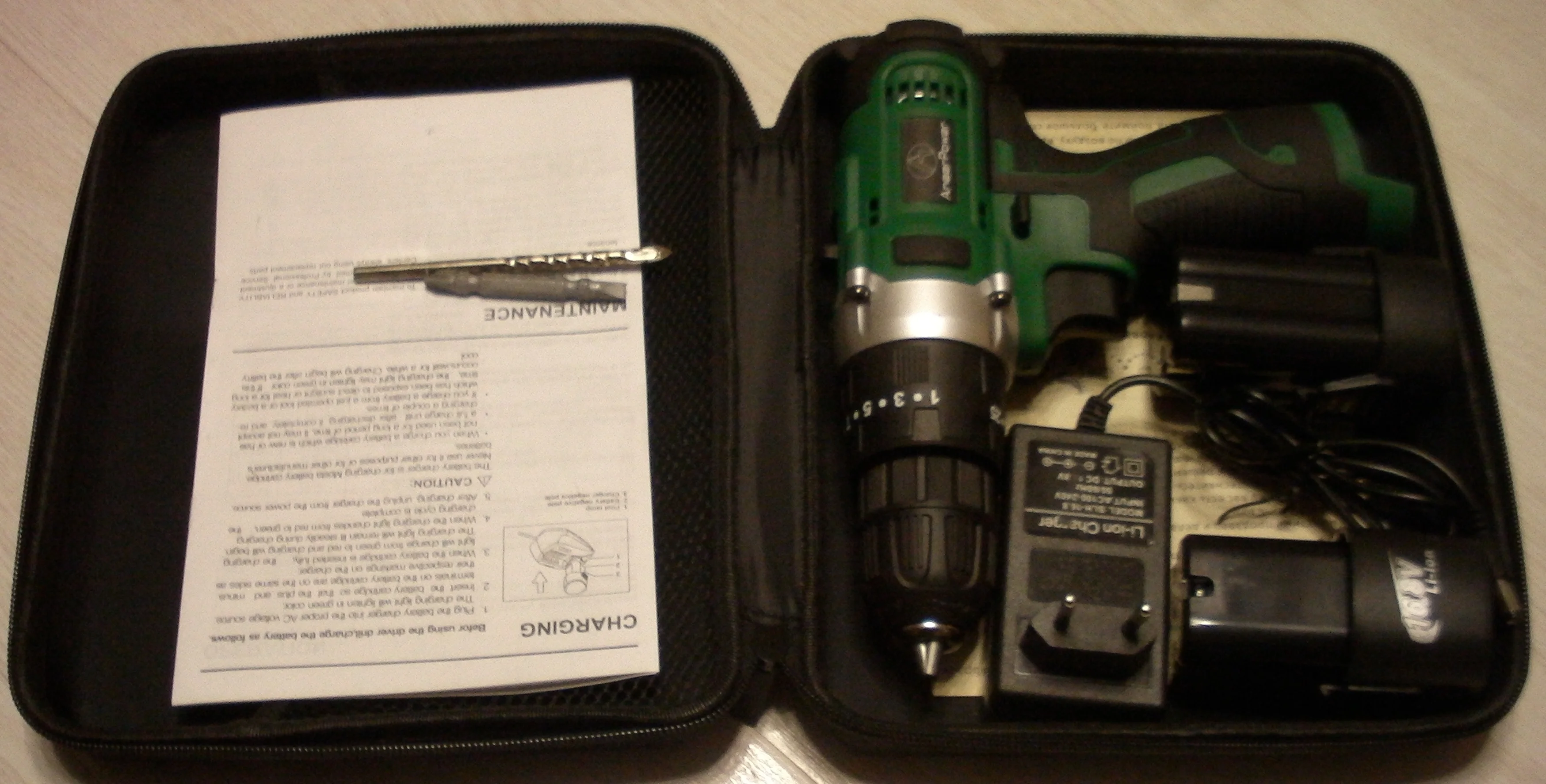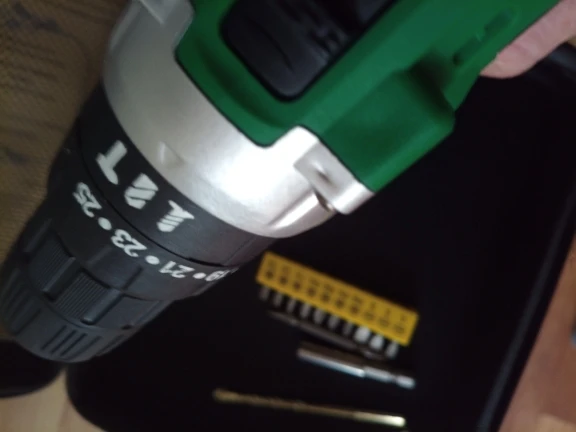 В комплекте не было набора бит !!! хотя на рисунке заказа они присутствуют. А так остальное в комплекте и дрель работает на всех режимах. В работе пока не проверял.