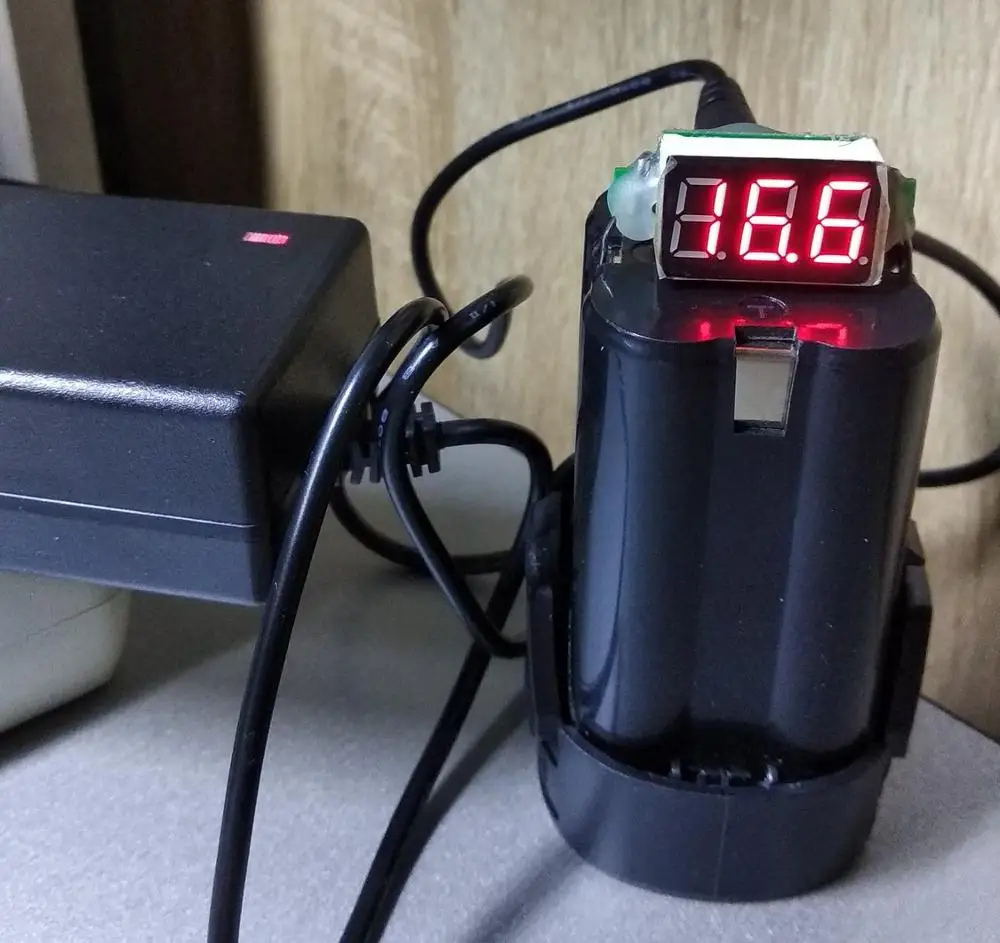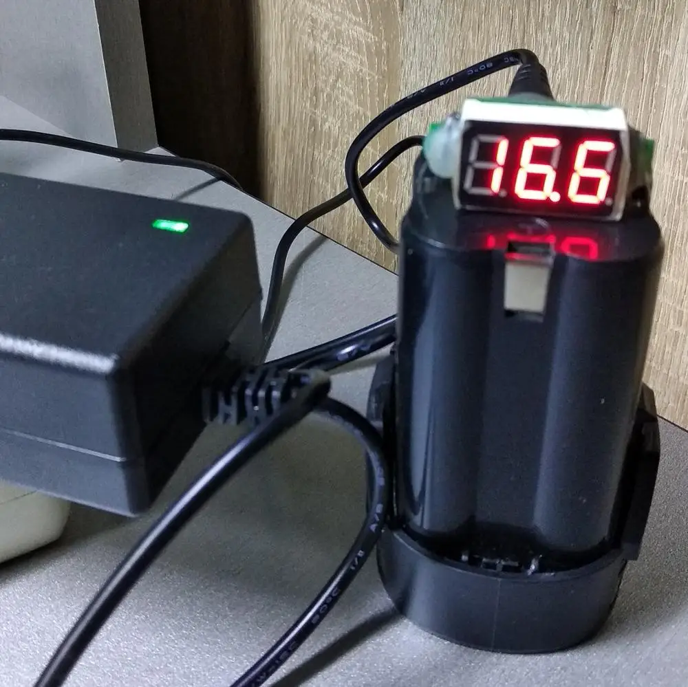 товар ждал 70 дней , всё нормально, ёмкость 16.8 v на 1.5 А. работает отлично. один аккумулятор разряжен второй норма.