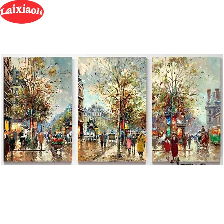 5D DIY алмазная живопись городской улица полный квадратный круглый дрель вышивка крестиком 5D 3 шт. люди пейзаж домашний декор мозаика