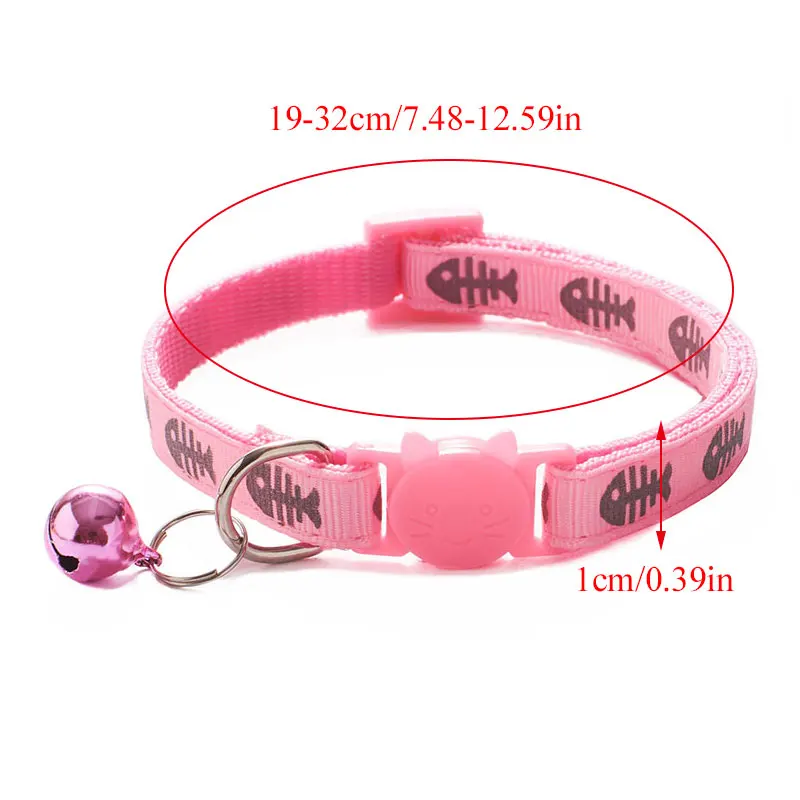 Ошейник для кошек, регулируемые пряжки с принтом в виде колокольчика, рыбьей кости, товары для домашних животных, для маленьких собак, чихуахуа, бульдогов, 1-шт. Домашний питомец собака