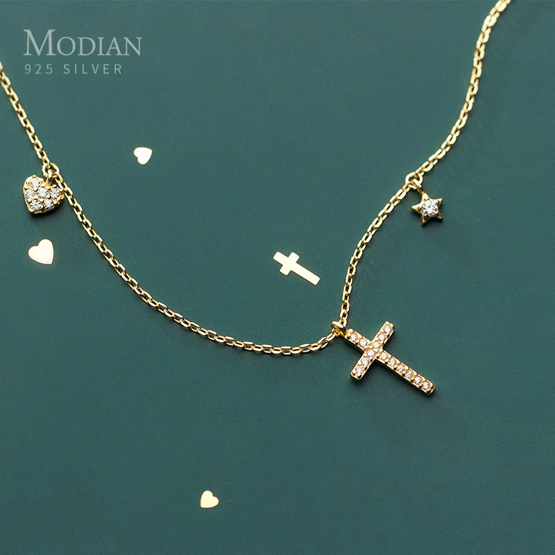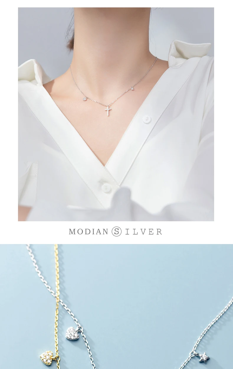 Цепочка Modian из стерлингового серебра 925 пробы с подвеской в виде звезды, Креста, сердца, ожерелье для женщин, цепочка золотого цвета, ожерелье в Корейском стиле, Изящные Ювелирные изделия