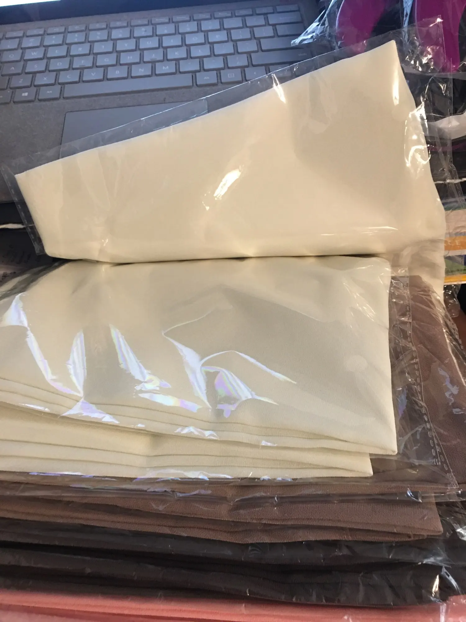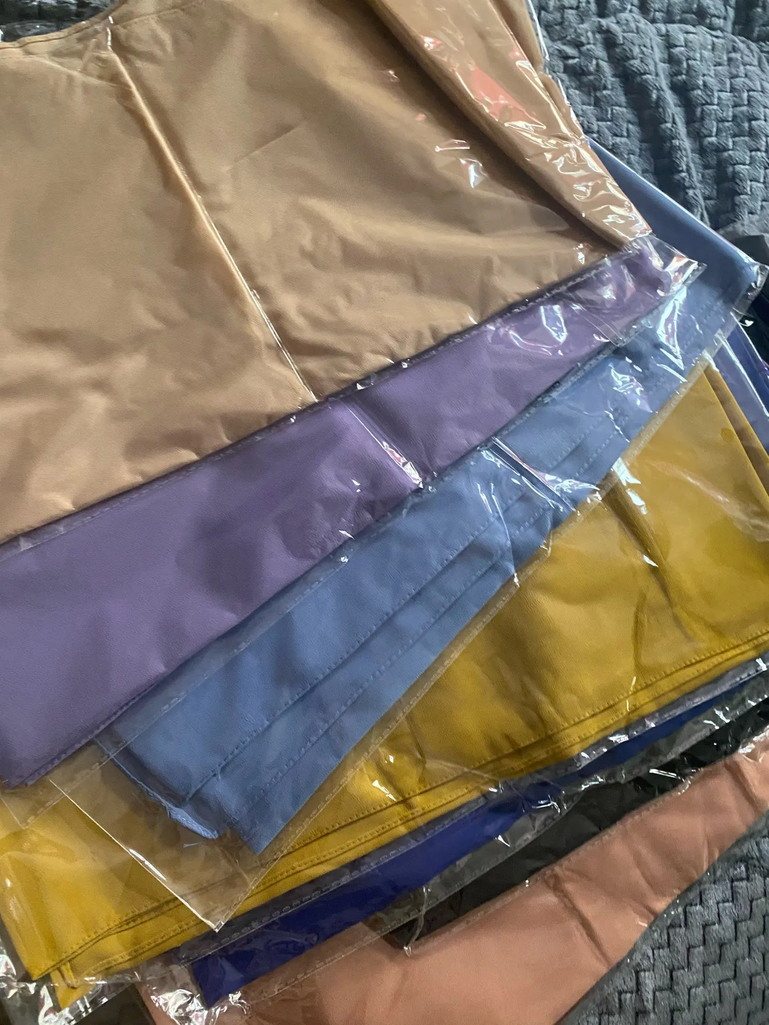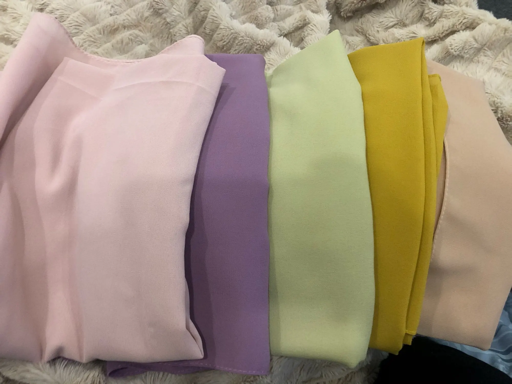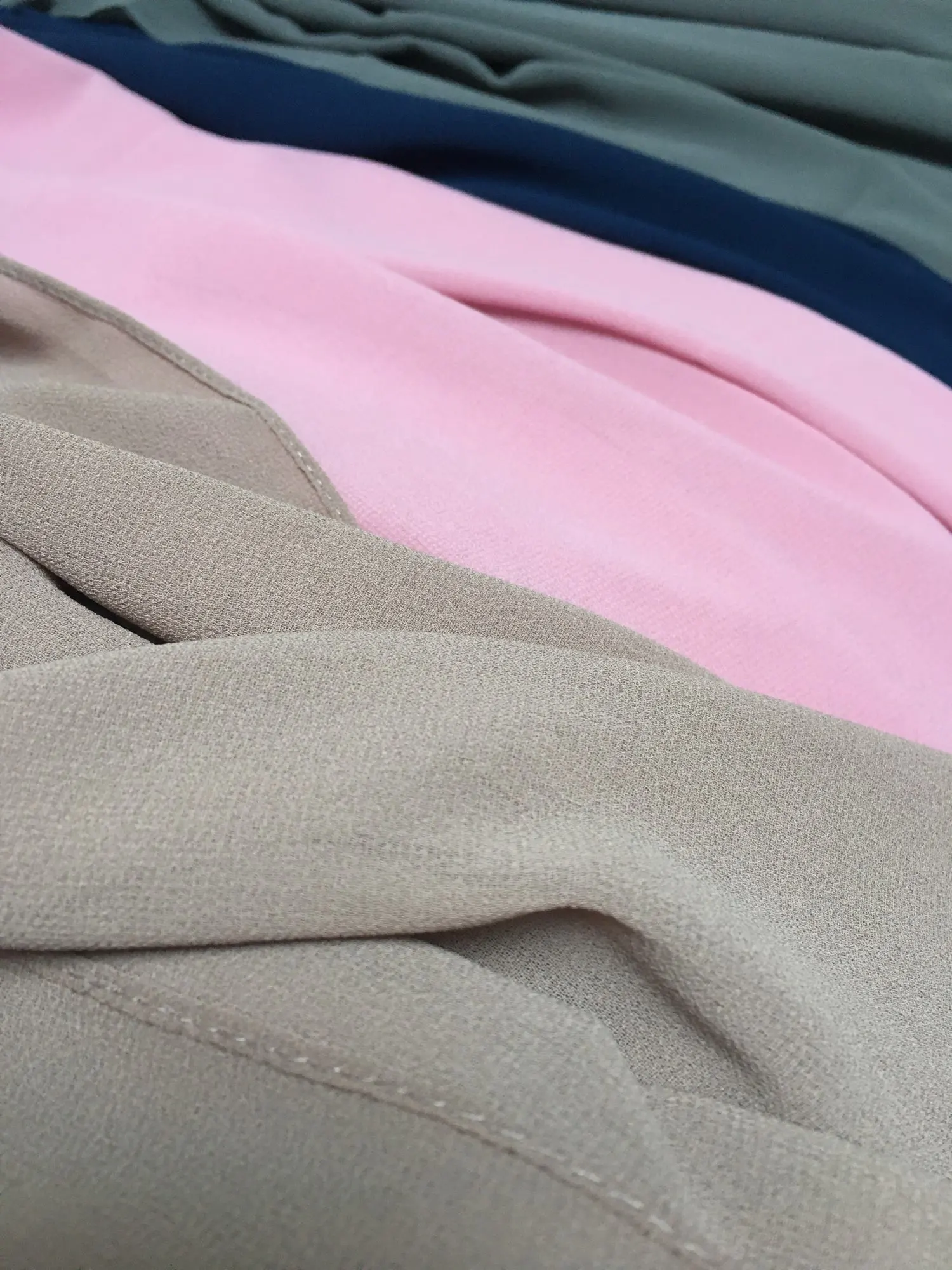 Какие они красивые!! Потрясающие цвета, ткань выше всяких похвал - отличная имитация шёлка, драпируются, не скользит. Цена смешная, вид - царский. Хоть на подарок, хоть себе, любимой.