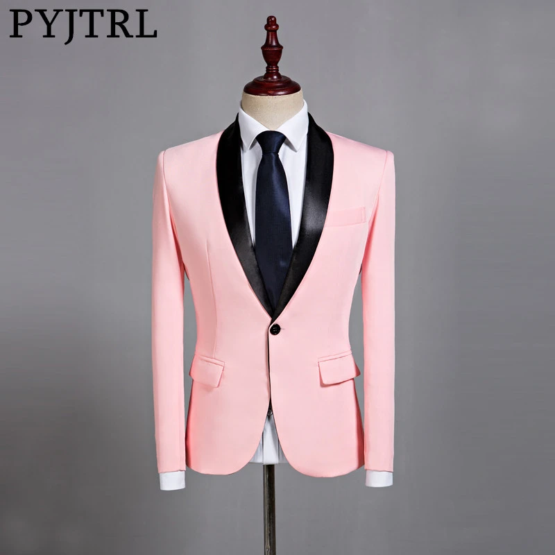PYJTRL мужские классические черные шали с отворотом Розовый Повседневный Блейзер DJ вечерние сценические певицы свадебные, для жениха приталенный костюм пиджак костюм Homme