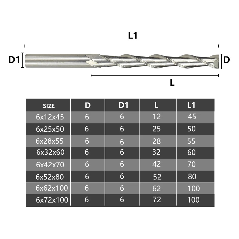 Концевая фреза с 2 канавками, спиральные фрезы 6 мм, хвостовик для металлообработки, фрезы из карбида вольфрама