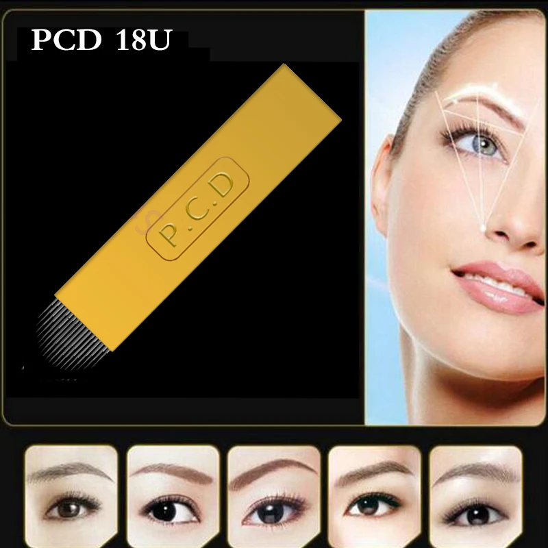 Лезвия Tebori для микроблейдинга, 50 шт., иглы для татуажа бровей, Pcd жесткий 18U для микроблейдинга, ручка для вышивки, макияж