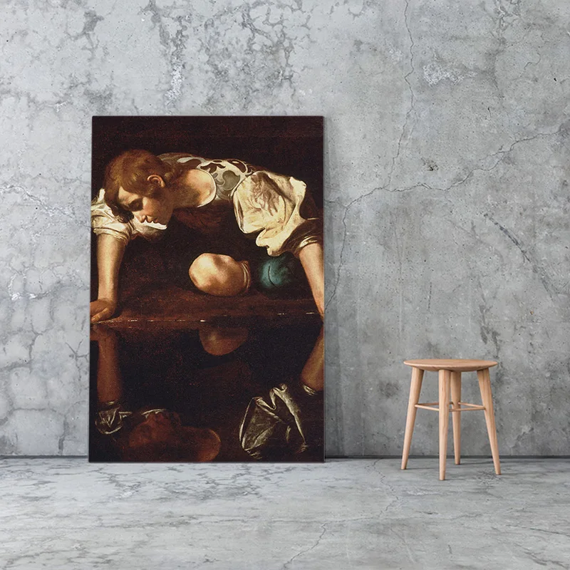 Картина-шедевр Narcissus Caravaggio в рамке, деревянная рамка, постер на холсте, настенное искусство, декор для комнаты, кабинета, домашний декор, принты