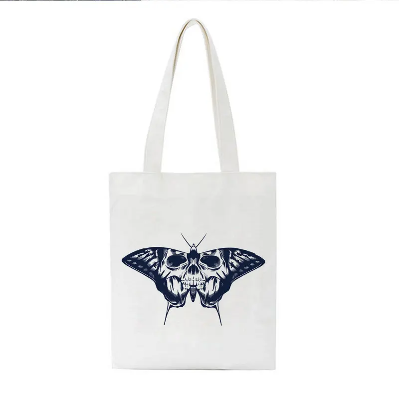Женская Холщовая Сумка с принтом черепа и надписью, в готическом стиле