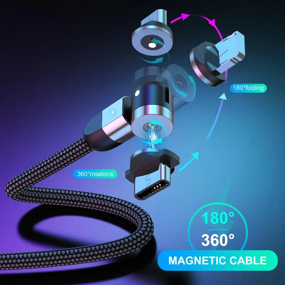 Новый 360 + 180 вращающийся магнитный Зарядное устройство Micro USB C Тип C кабель быстрой зарядки USB кабель Магнитная Зарядка мобильный телефон USB шнур