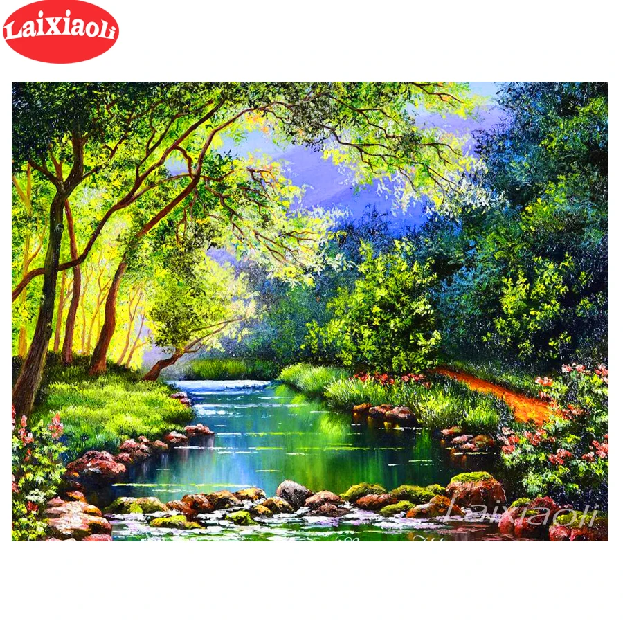Алмазная живопись, зеленое озеро, деревья, пейзаж 5d, Набор для вышивки ручной работы, полный квадратныйкруглый сверло, Новое поступление, домашний декор