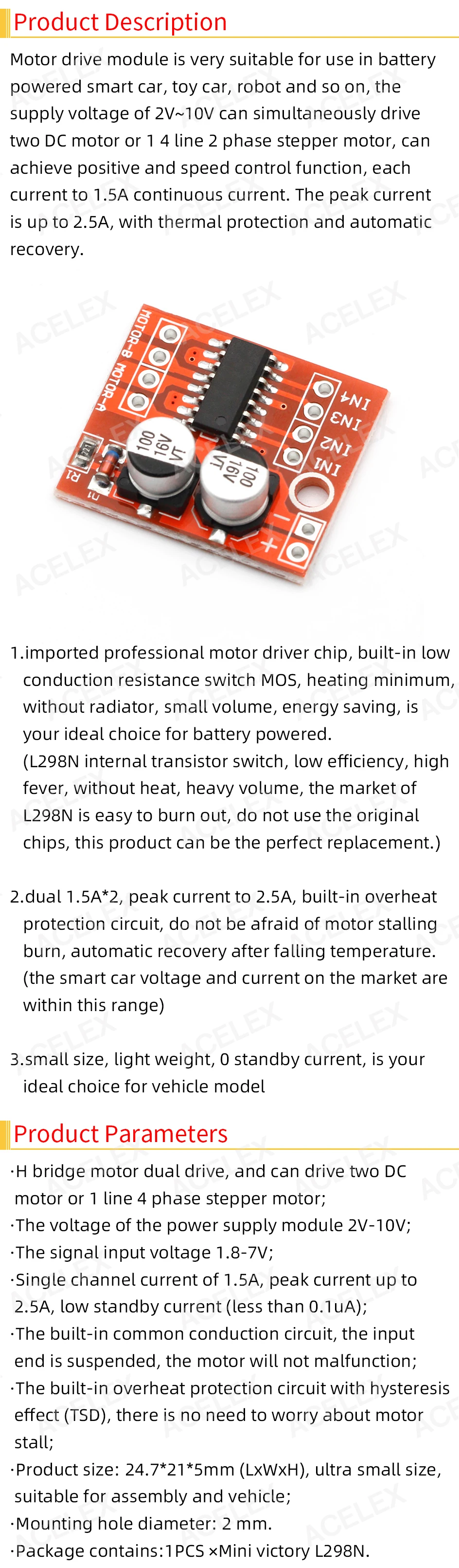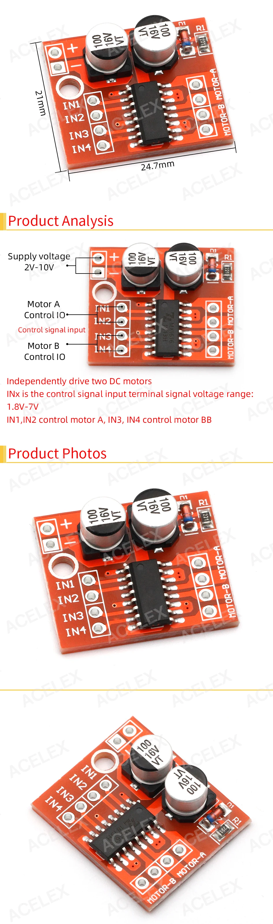 Модуль привода постоянного тока, реверсивная ШИМ скорость, двойной H Мост, шаговый двигатель Mini Victory L298N