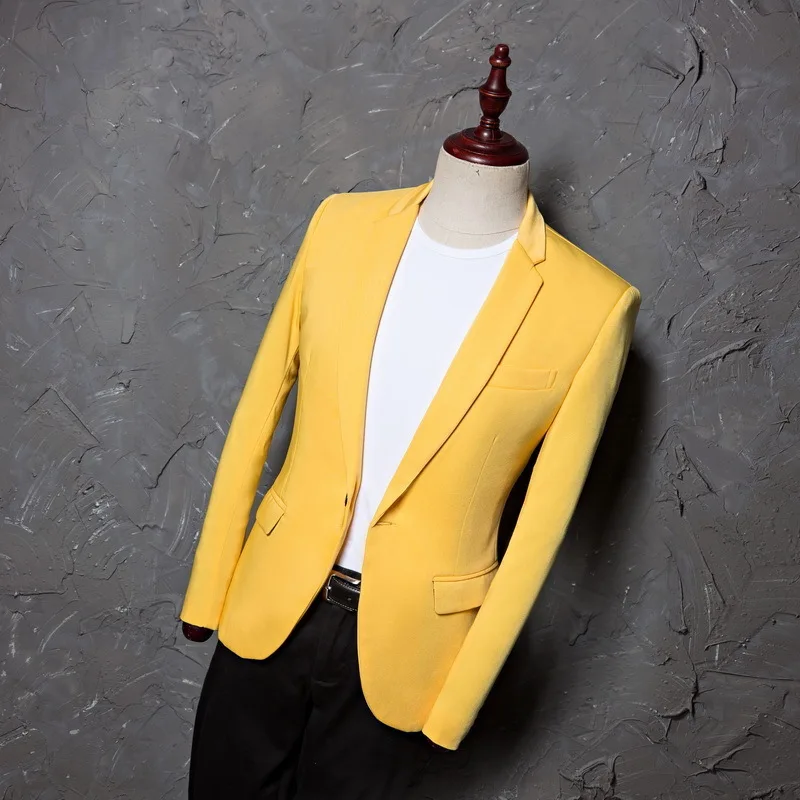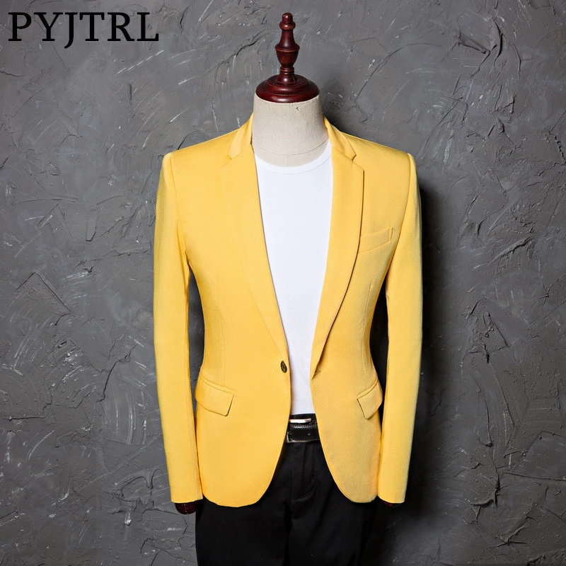 PYJTRL мужской классический желтый пиджак Модный повседневный Блейзер Дизайнерский Костюм Homme одежда для сцены для певцов