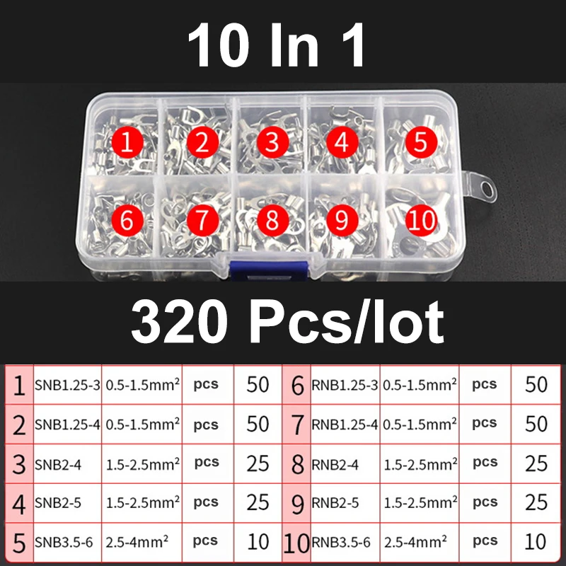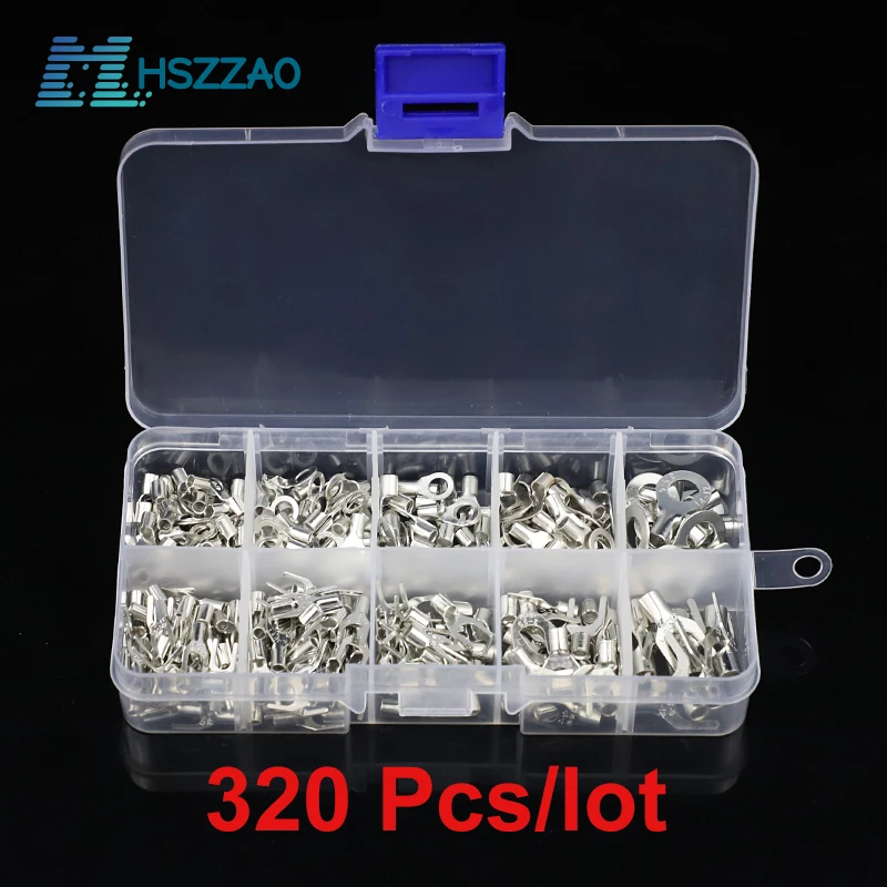 320 шт.кор. клеммы, неизолированная кольцевая вилка 10 в 1, U-образные латунные клеммы, набор в ассортименте, соединитель для кабеля, ОБЖИМНАЯ лопатка