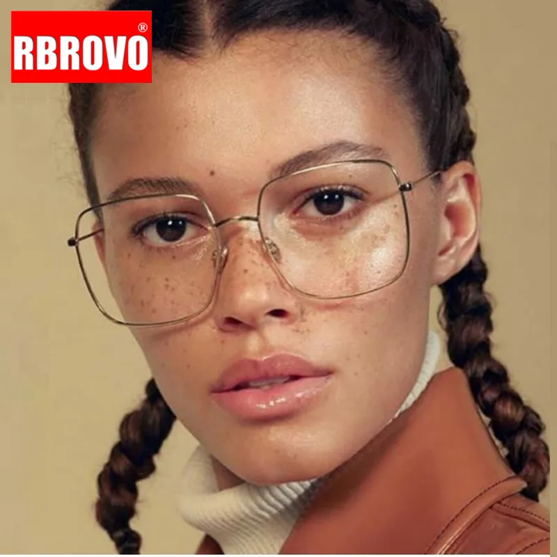 RBROVO 2021 новейшая квадратная оправа для очков, винтажные очки, женские Большие оптические оправы, металлическая оправа для очков, прозрачные линзы