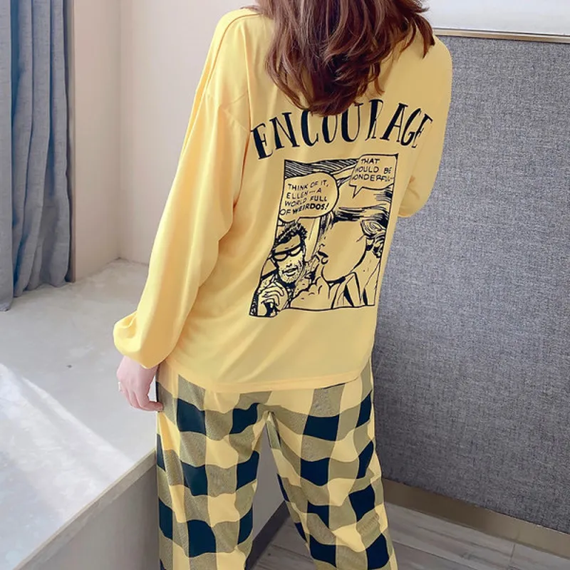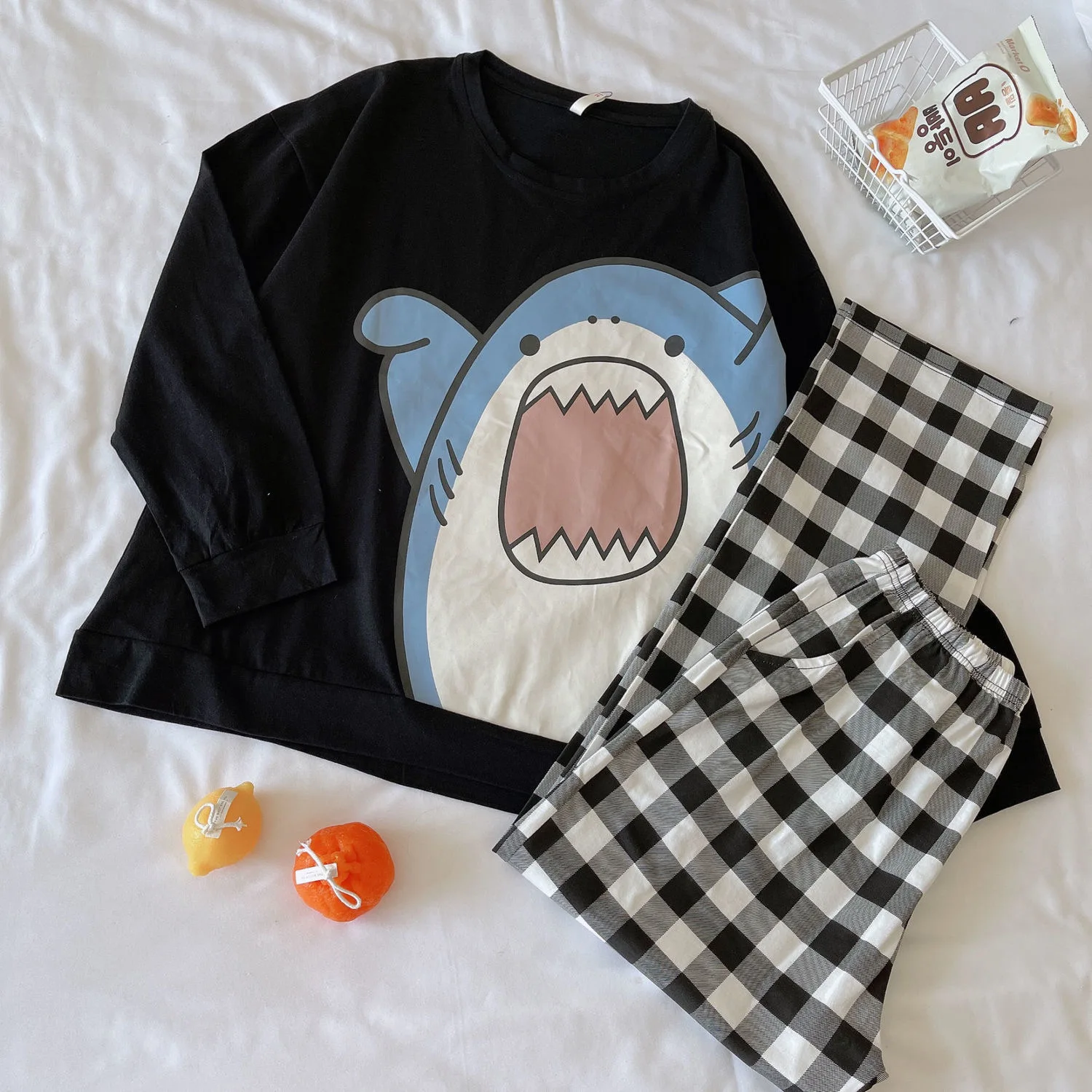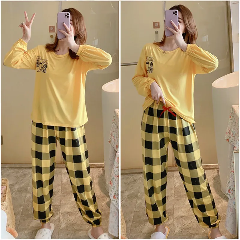 Пижама женская, тонкая, с мультяшным принтом, на осень