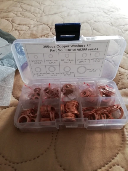 200 шт. медная шайба прокладка Гайка Болт уплотнительное кольцо твердое уплотнительное кольцо Ассортимент Комплект с коробкой автомобильное масло прокладка поддона пробка 9 Размер