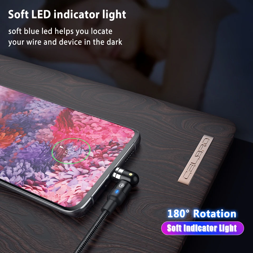 Бренд: CelBro®Товар: магнитный usb-кабельФункция: быстрая зарядка/Синхронизация данныхХарактеристики: a. Поддерживается вращение на 360/180 градусов, может быть прямой/90 градусов кабель, регулируемый, 2 в 1; b. Сильный Megnet; c. Светильник индикатораМатериал: нейлон + металлЦвета: черный, красный, фиолетовыйДлина: 1 м 2 м