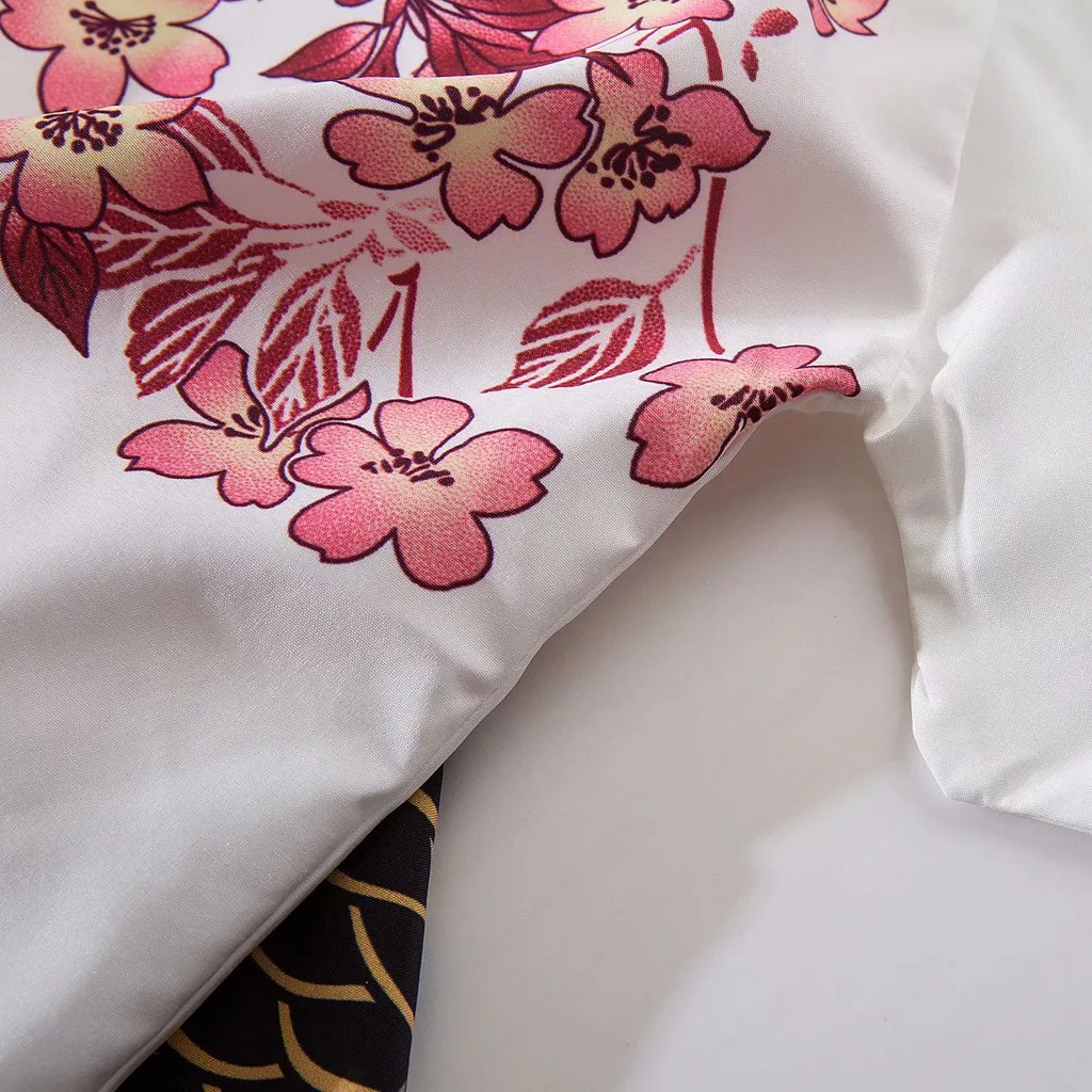 Черно-белое кимоно в японском стиле с рисунком большой рыбы, летнее...