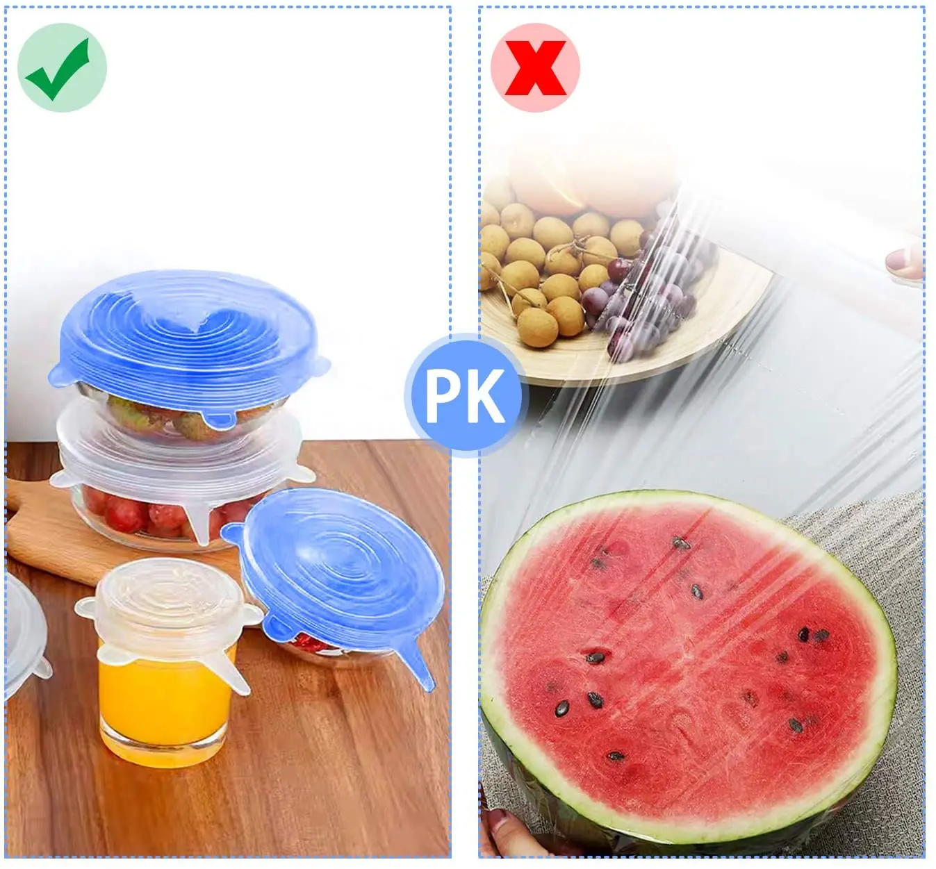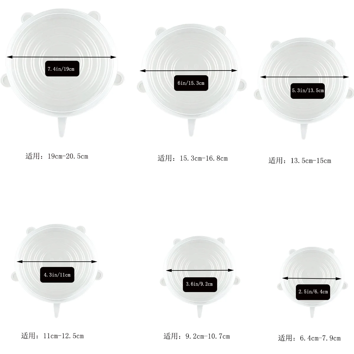 Эластичные крышки из 6 шт.партия силикона, крышка для посуды, чаши,...