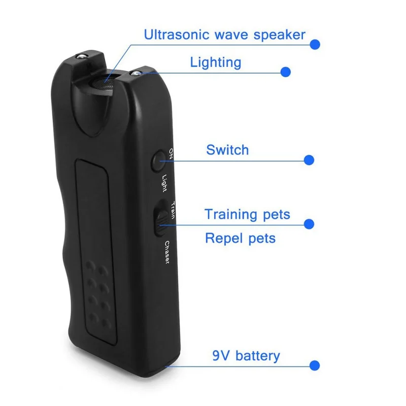 Портативный ультразвуковой прибор для отпугивания собак, Репеллент для лая, светодиодный фонарик, Azl