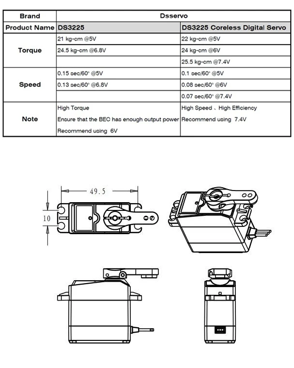 Номер моделиDS3225 and DS3225 coreless
