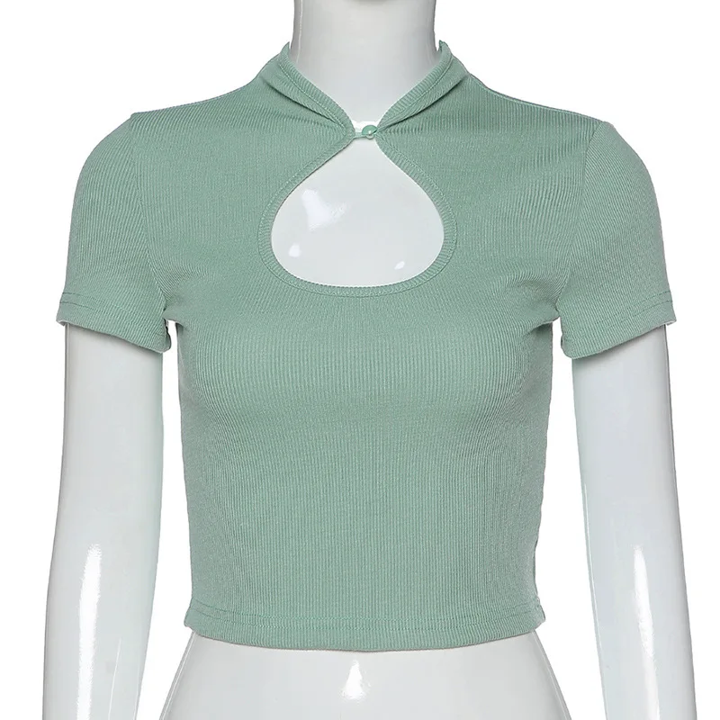 Женский этнический топ-Ципао, с вырезами и воротником, лето 2020, шикарные простые белые и зеленые футболки с коротким рукавом
