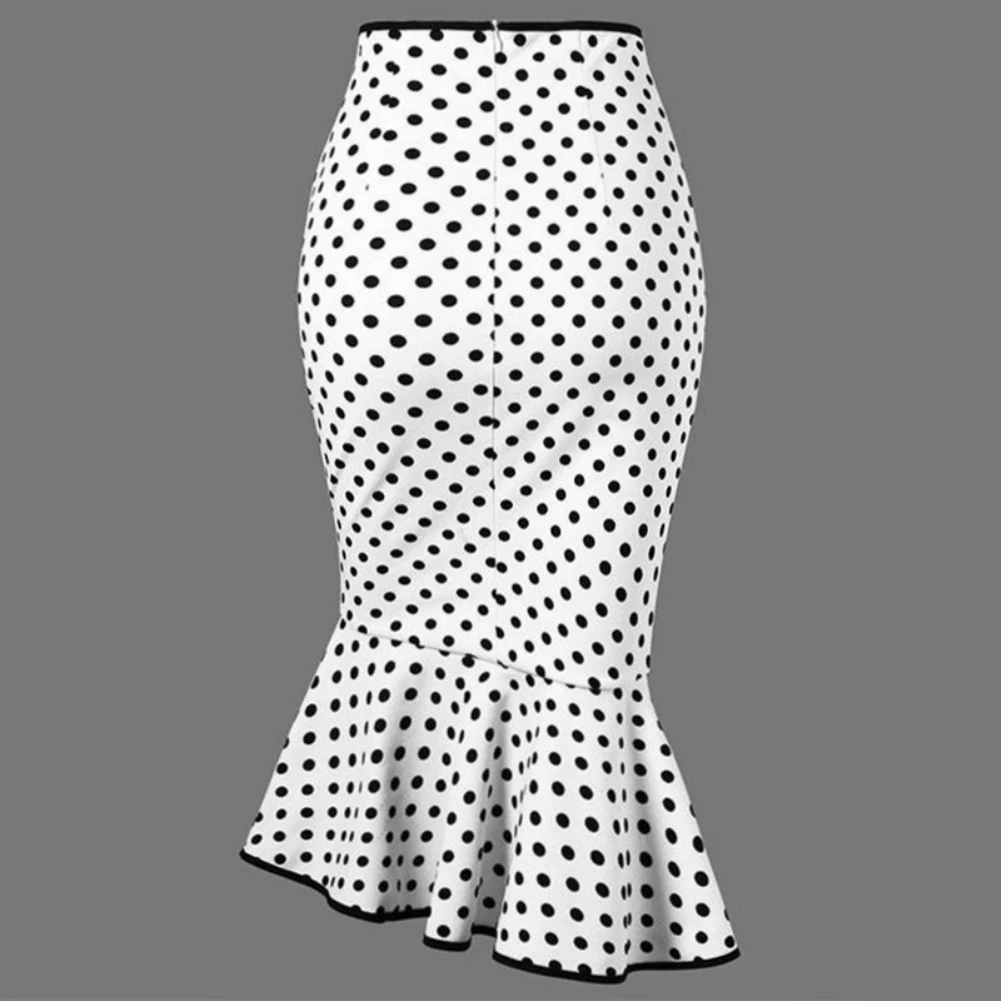 Особенности: стройнящая и облегающая, сексуальная, юбка русалки, универсальная, узор в горошек
