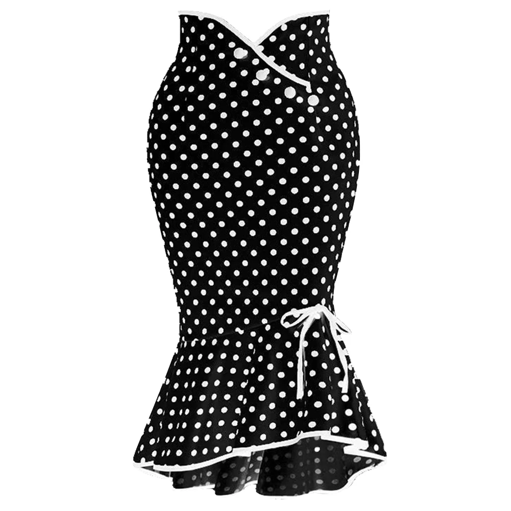 Сексуальная стройнящая и подходящая юбка Русалочки в горошек с оборками, женское офисное платье для работы