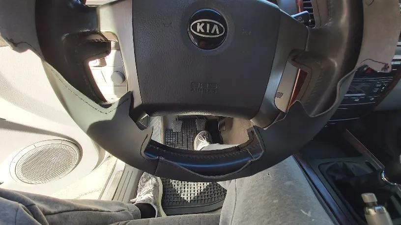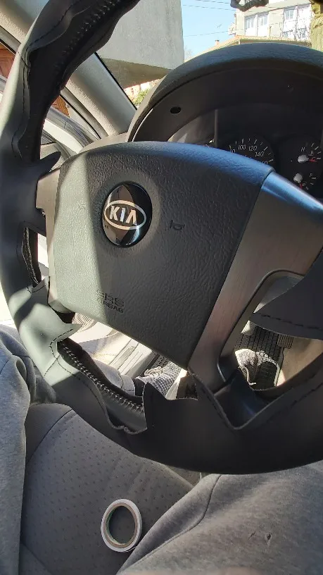 Товар пришёл достаточно быстро!!! Кожзаменитель, но неплохого качества! Брал на Киа Сорренто. По спицам совпадает, только придётся сильно натягивать! Швы не совпадают с канавками на руле! Комплект хороший, две катушки с нитками, две иголки, двухсторонний скотч для фиксации оплётки и скребок для заправки ткани!!! Было бы совсем идеально если бы положили ещё крючек для затяжки нитки!!!!