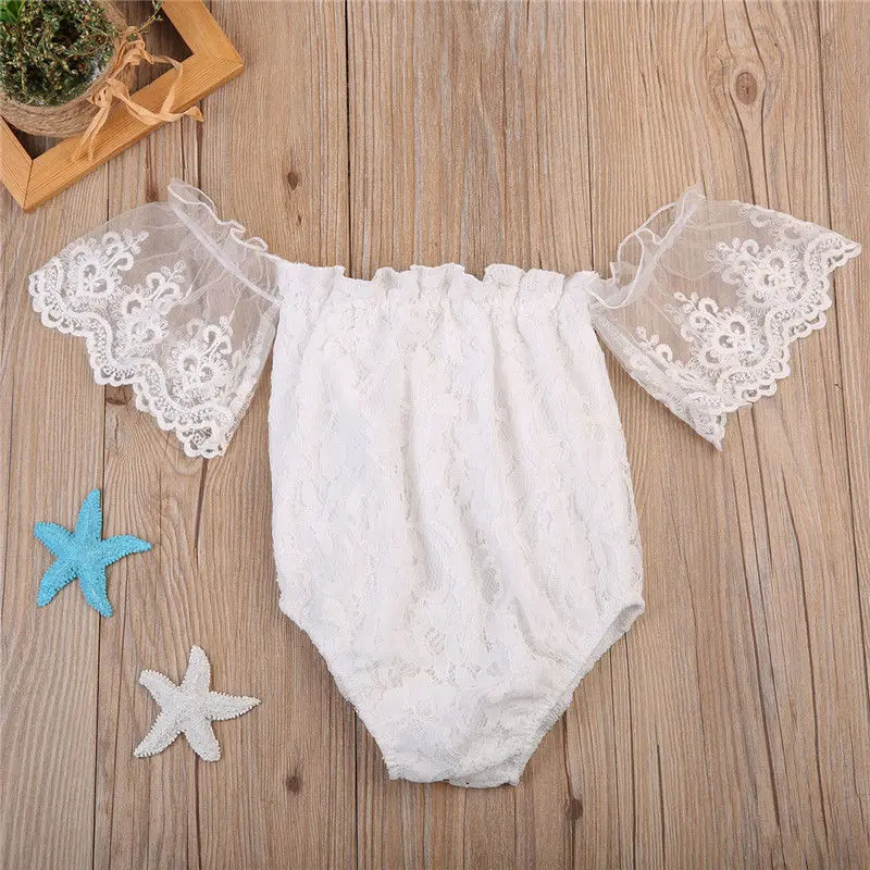Милый кружевной комбинезон для новорожденных девочек, кружевной комбинезон с открытыми плечами, цельный пляжный костюм, одежда принцессы для детей 0-24 месяцев