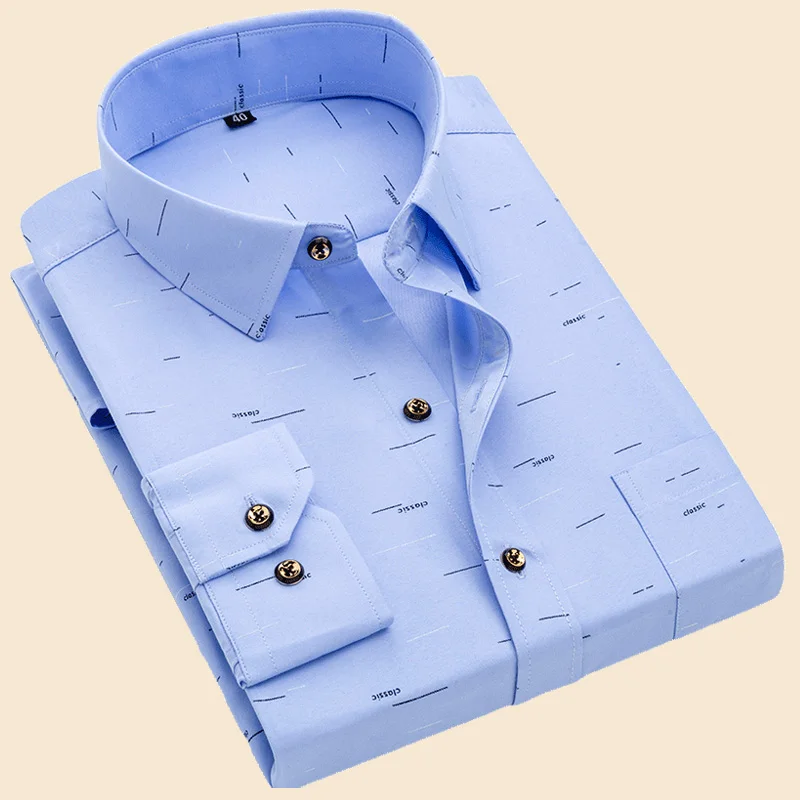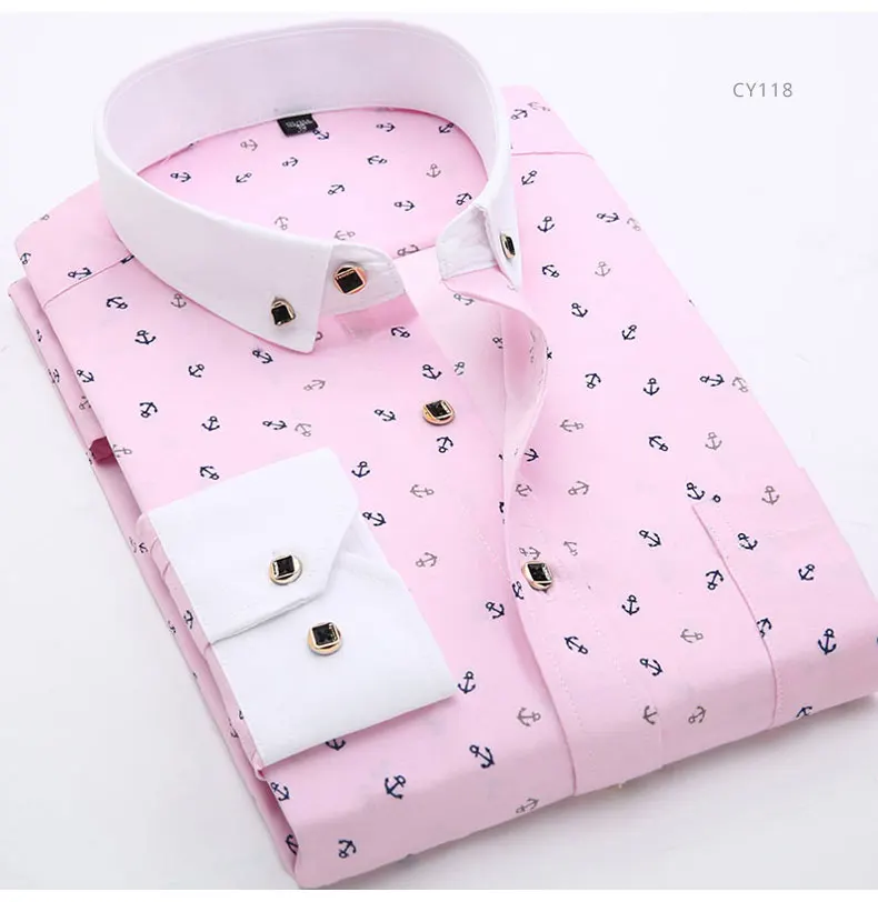 Рубашка мужская с длинным рукавом, модная повседневная сорочка с цветочным принтом, мягкая тонкая деловая классическая, Стандартный крой, весна-лето