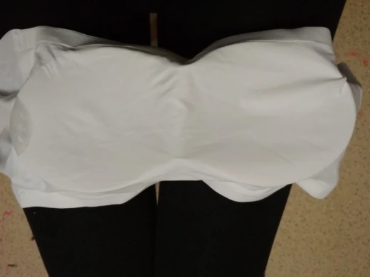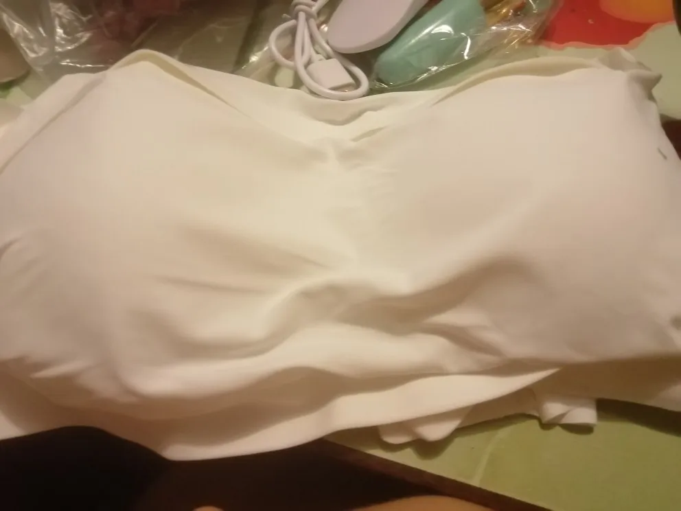 Заказала на всякий случай. Обязательно пригодится! Удобный, не сползает на маленькой груди. Обратите внимание, что внутренняя часть чашечки с пупырышками. Если что-то сильно обтягивающее, возможно будет виден рельеф. Но это не точно. Объем под грудью - 75 см. Все ок.