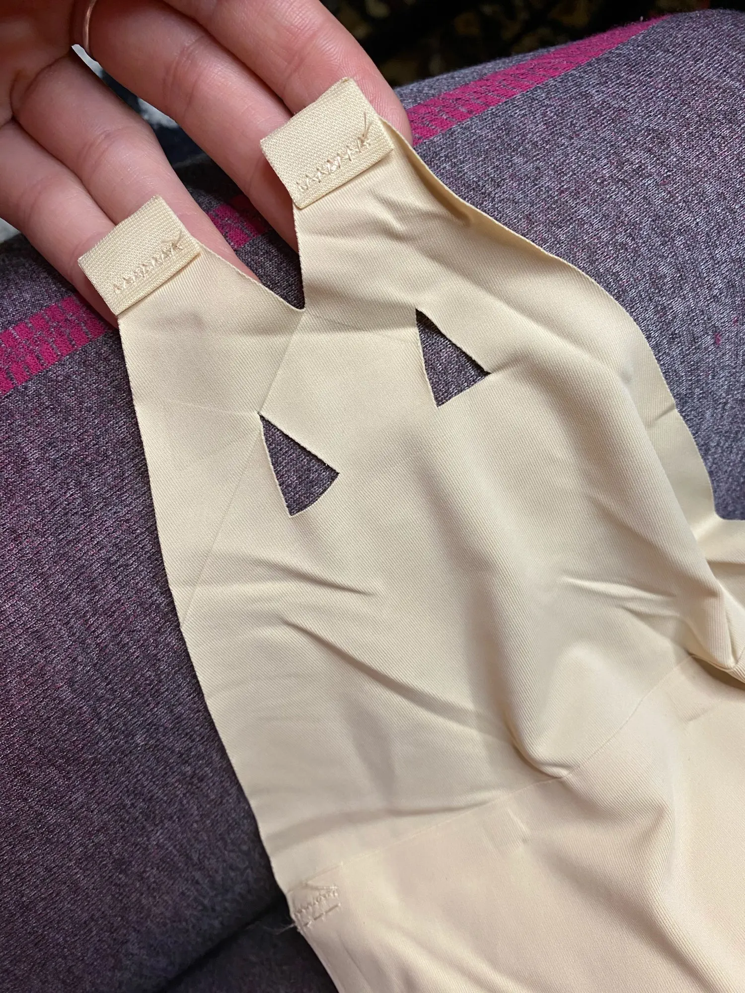 странная штука. точно не на каждый день. ткань приятная. на 75б норм, даже немножко свободно, обхват не тянет, дышать свободно.