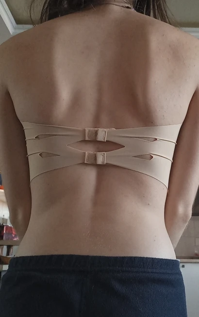 в принципе норм, удобный и нигде не давит. Внутри чашечки соединённые и на моей груди смотрелось не очень, но чашечки вынимаются, я их разрезала ( чтобы были 2 отдельные) и норм сидит