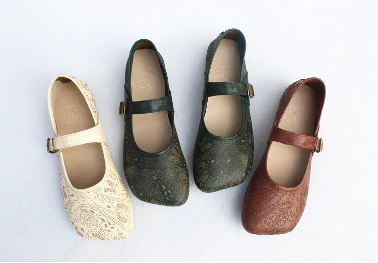Женская обувь на плоской подошве с квадратным носком; Женские балетки на плоской подошве из 100% натуральной кожи; Женские балетки с узором