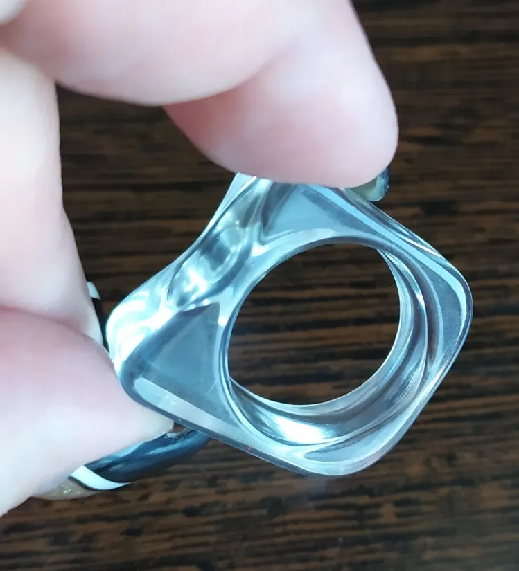 Кольцо большого размера, наверное, 18 или 19. Мне только на большой палец подходит и то с вероятностью потерять