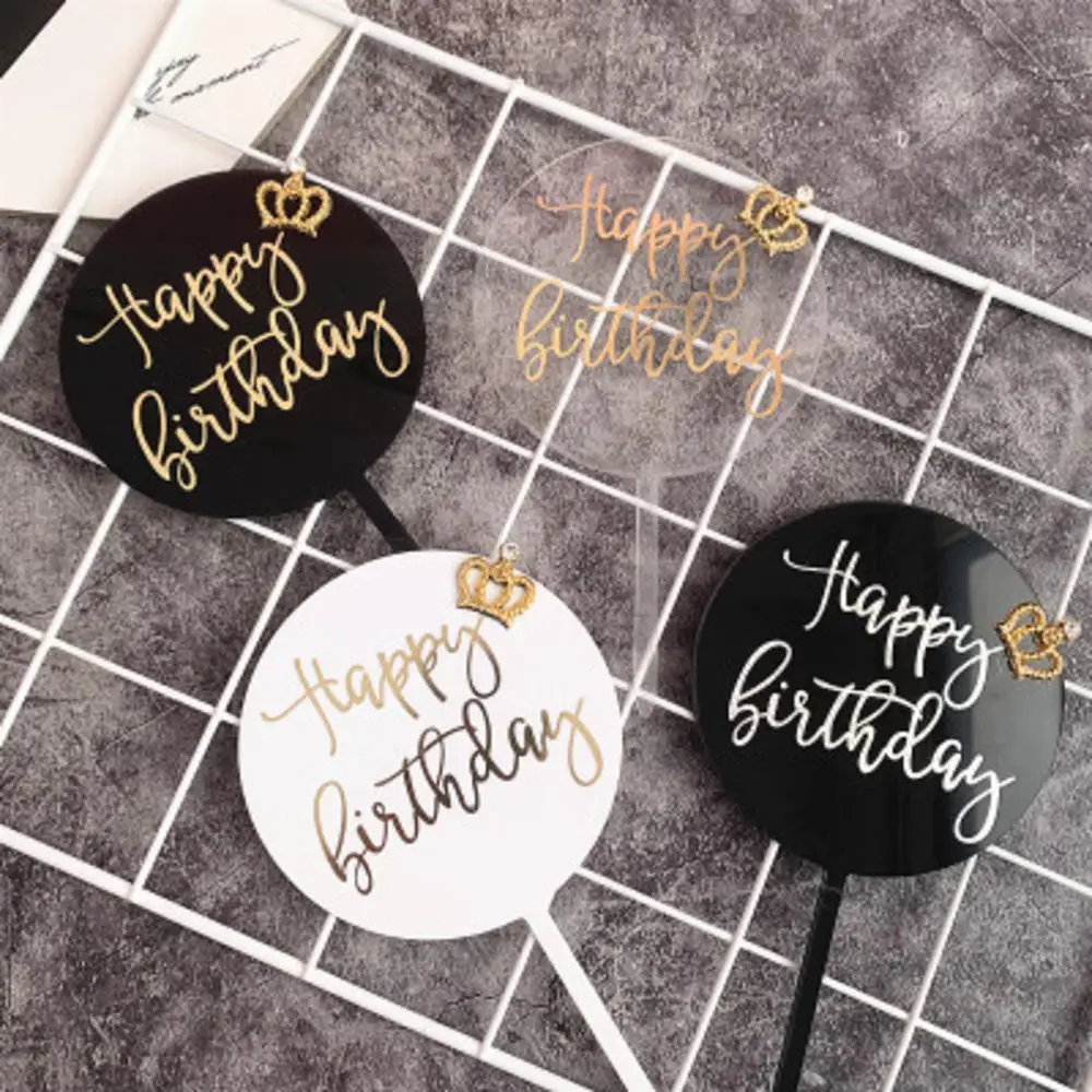 Позолоченный акриловый круглый Корона Топпер для торта С Днем Рожде...