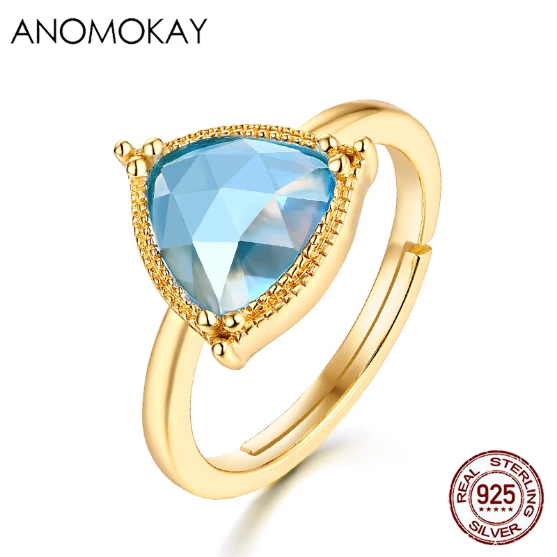 Новые креативные кольца anomook с голубым топазом, золотые кольца для женщин, подарок для влюбленных, 925 пробы, серебро, один размер, вечерние кольца