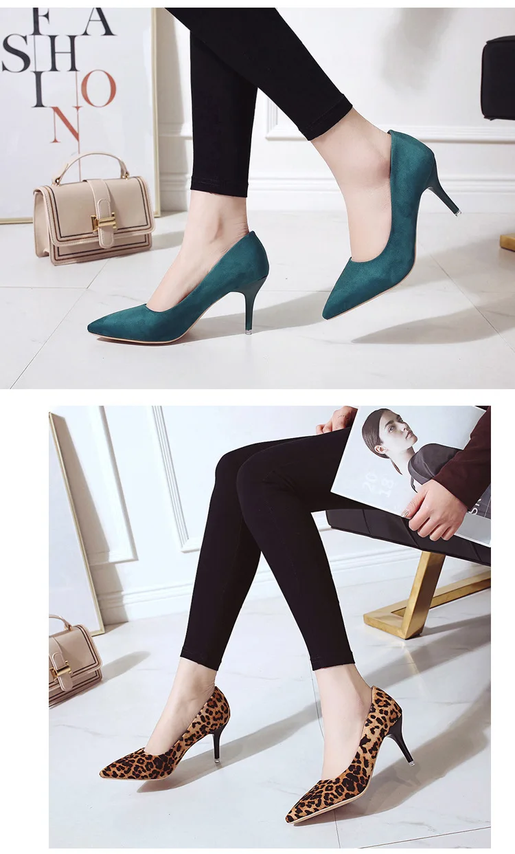 Осенние женские туфли-лодочки на высоком каблуке 8 см, Tacones, остроносые туфли на шпильке, сексуальные женские свадебные туфли с леопардовым принтом размера плюс 34-44