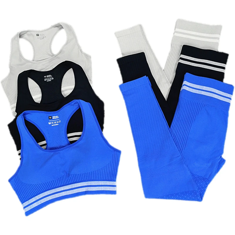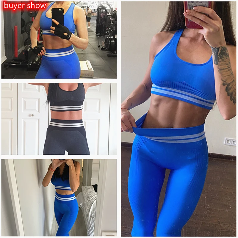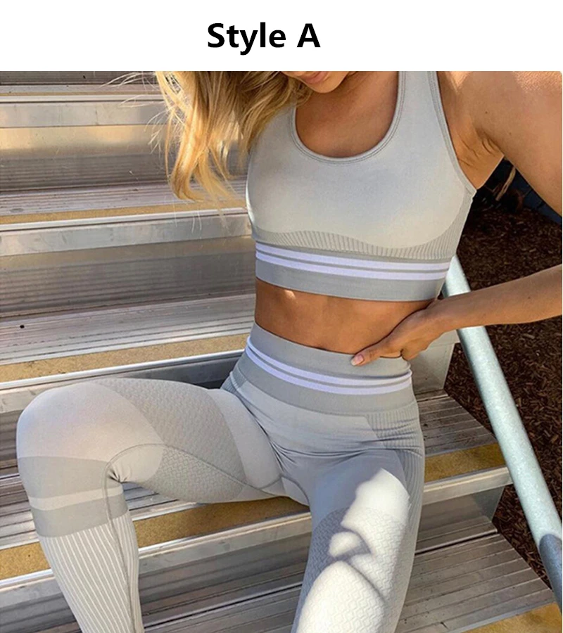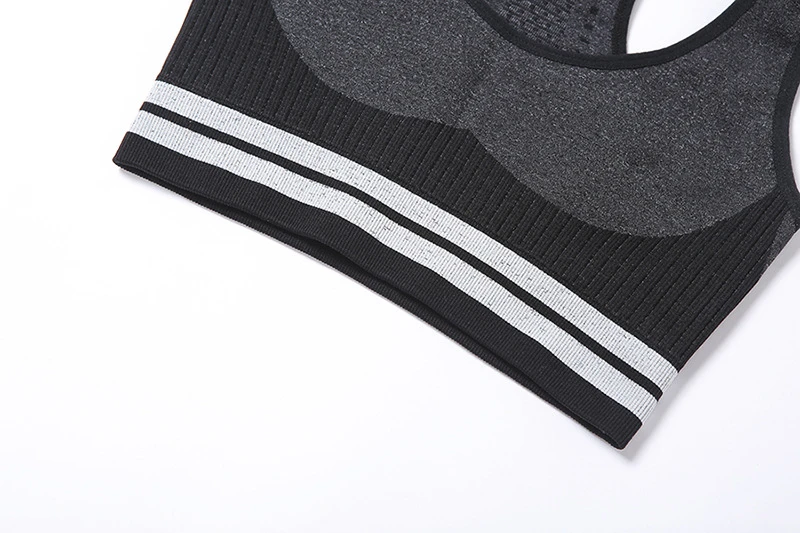 Комплект спортивный женский бесшовный из 2 предметов, леггинсы, бюстгальтер серый короткий топ