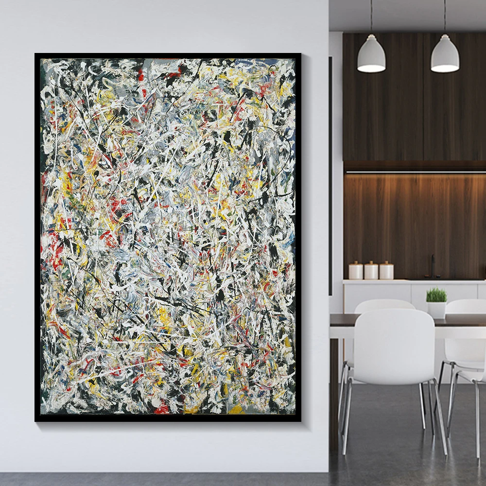 Картина с изображением Майкла Поллока белый светильник, холст, современное искусство, картина маслом, всемирно известное произведение искусства, картина, Настенный декор, украшение для дома