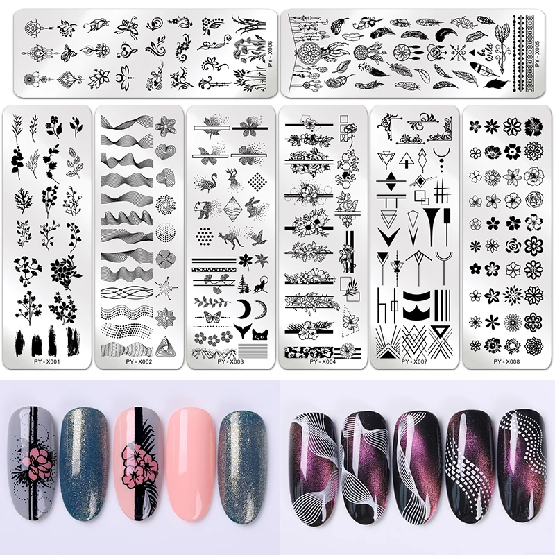 Пластина для стемпинга ногтей PICT YOU, Геометрическая, кружевная, Цветочная, из нержавеющей стали